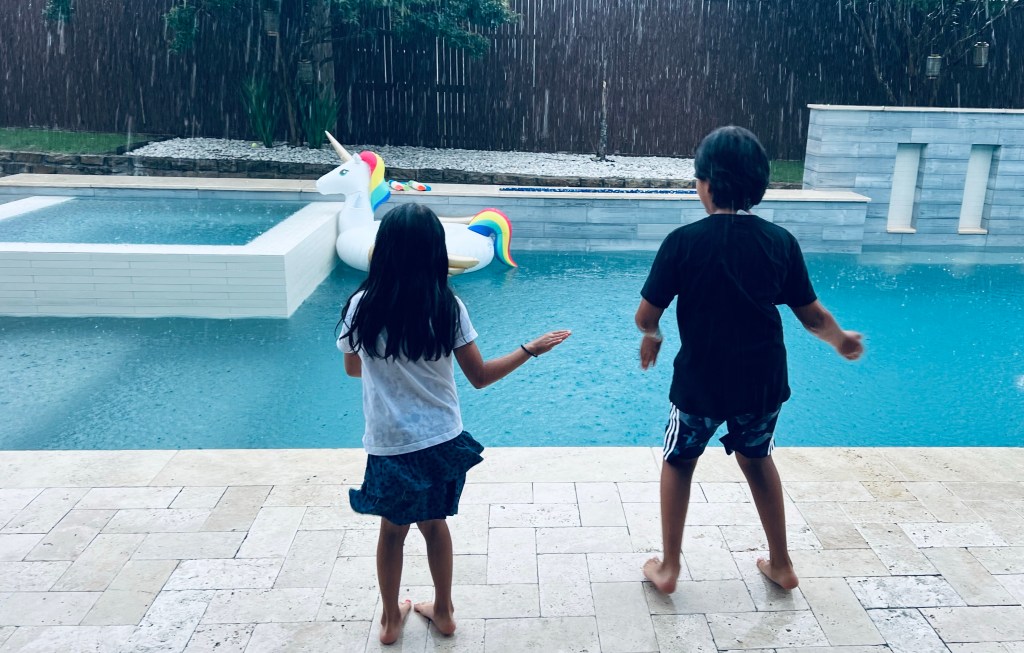 Today the weather suddenly turned and the clouds burst open without any warning. Sabbatical me decided to quickly make a cup of chai and heated dhokalas to enjoy in my patio before the rain stopped. Kids came home and saw me sitting in the patio listening to the raindrops falling. As if on cue from “Dil to Pagal hai”, they stepped out in the rain and started singing “tak dhoom Dhoom”. I watched that movie in Pune and the entire experience was the perfect Pune Moment!