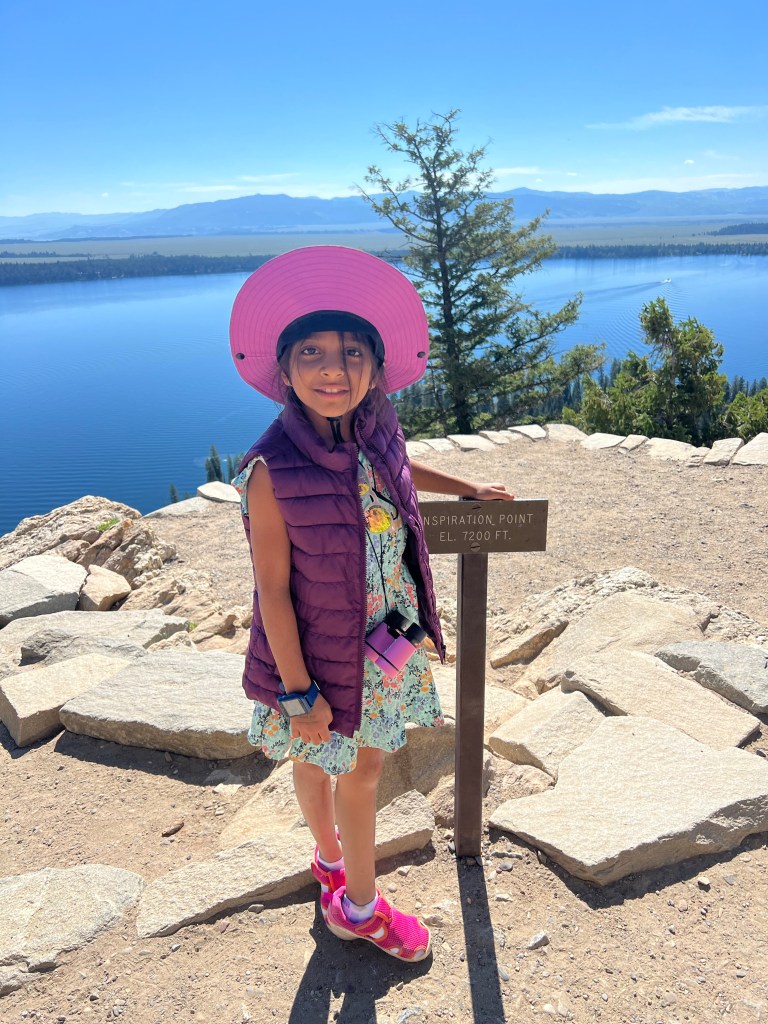 Continuing our Wyoming National parks trip, we made it to Jackson, WY late in the evening to start our Grand Tetons National Park adventure for the next 4 days. These mighty mountains make you gasp when you first see them. They are majestic, serene, vast, powerful and as my daughter said – Bejeweled (the patches of snow looked like jewels on the mountain according to her). Teddy Roosevelt remarked that the Tetons are “what mountains are supposed to look like” and I couldn’t agree more. This small and young range with towering peaks takes your breath away and before you know it, you start questioning your life choices. Following the same format as my Yellowstone post, I will provide a summary of our daily adventures, pro tips and itinerary.