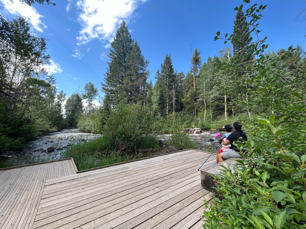 Day 2 – Phelps lake in Rockefeller Preserve was recommended as a local favorite and we did the 2.2 mile roundtrip hike. It was an easy hike and the lake was perfect for a swim. Along the way we met a Ranger who gave us tips on how to handle a bear encounter – Make noises and back off. We also spent time at the Exhibit in the preserve which was impressive. After lunch, we headed back to the park for the Snake River Float. It was a 2.5 hour leisurely float on the snake river for 10 miles. We saw bald eagles, otters, beavers and lots of Canadian geese. No mammals were spotted and kids were bored after a while so they just laid on the floors of the raft and took a nap. Nothing like seeing you kids napping during an activity you paid big bucks for :/. We picked up Korean food (delicious) for dinner on our way back and spend the rest of the evening playing card games in the hotel lobby.